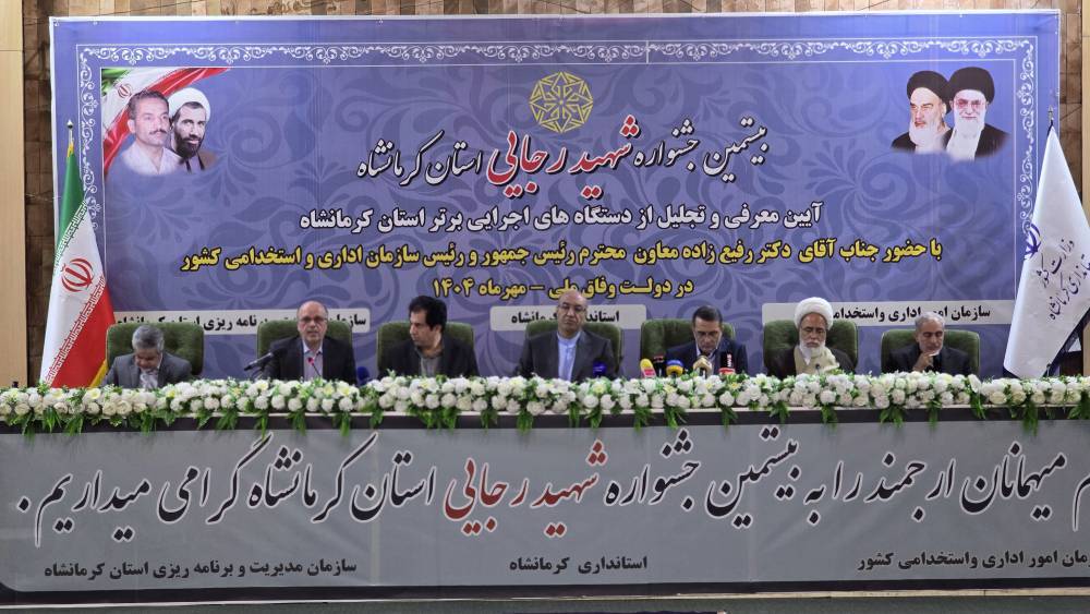 🔹دکتر علاءالدین رفیعزاده؛ معاون رئیسجمهور و رئیس سازمان اداری و استخدامی کشور در بیستمین جشنواره شهید رجایی گفت: «جشنواره شهید رجایی، آیینهای است که دولت را در برابر کارنامه خویش قرار میدهد و اجرای نظام جامع ارزیابی عملکرد، ضامن اصلاح پایدار نظام اداری و ارتقای کیفیت خدمات به مردم است.»