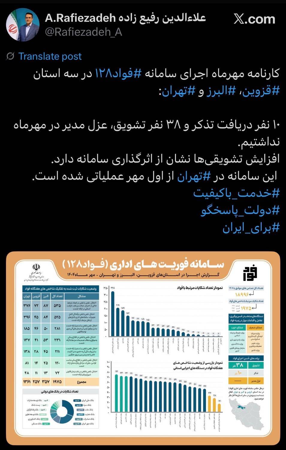 🔹افزایش خدمات به مردم در ادارات دولتی با طرح مهم *فواد-128* و برنامه ریزی برای افزایش کیفیت خدمات دهی به مردم