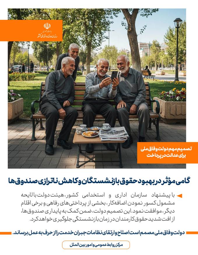 🔹معاون رئیسجمهور و رئیس سازمان اداری و استخدامی کشور از تصویب لایحه افزایش اقلام مشمول کسور بازنشستگی در هیئت دولت خبر داد. به موجب این لایحه، فوقالعاده مناطق کمتر توسعهیافته و بد آب و هوا، اضافهکار، حقالتدریس غیرموظف معلمان و اعضای هیأت علمی، نوبتکاری و بخشی از پرداختهای رفاهی کارکنان، مشمول کسور بازنشستگی خواهند شد.
